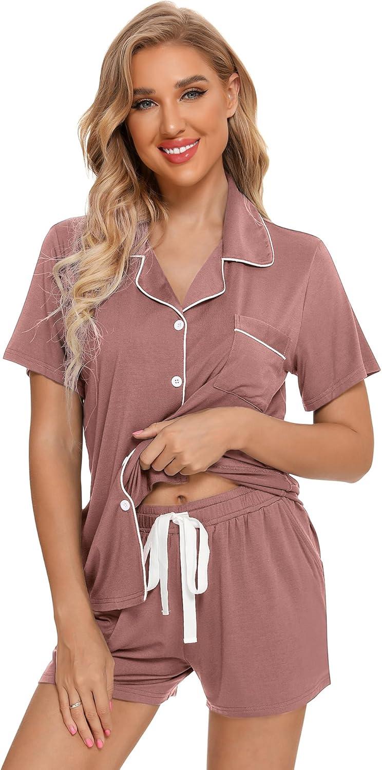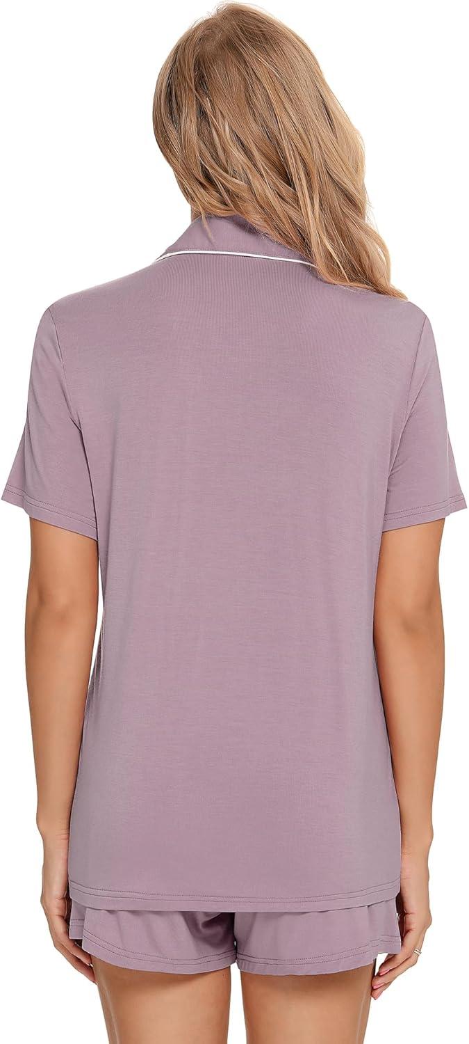 Leikar 2 Pack Button Up Pajama Set For Women Sleepwear Soft Pjs Bride Pajamas(Brick/Violet)
