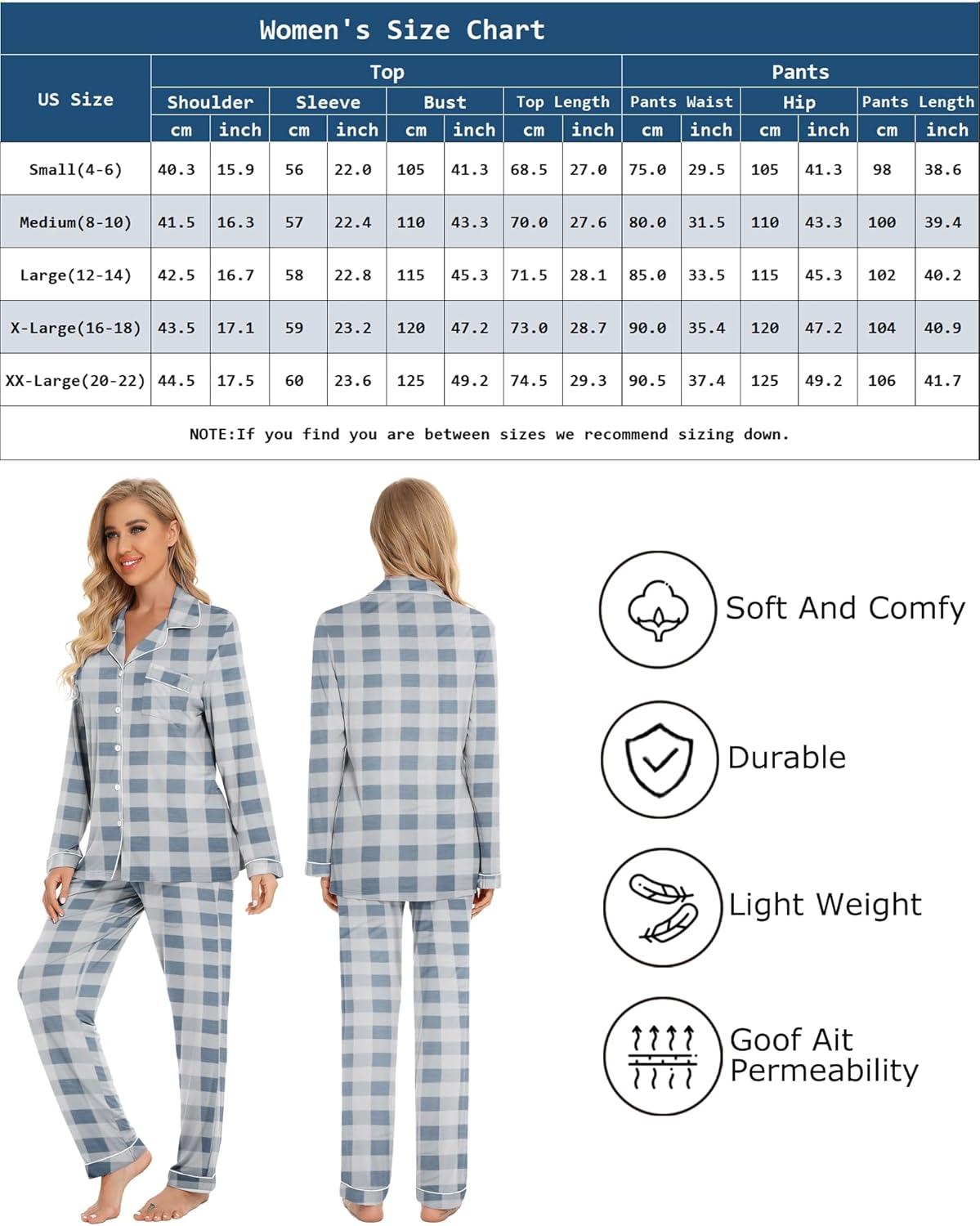 Get your hands on our exclusive Leikar Button Up Pajama Set For Women Long Sleeve Shirt And Pajama Pants Soft Pjs Lounge Sets(Blue Plaid) collection, now at a discounted price.