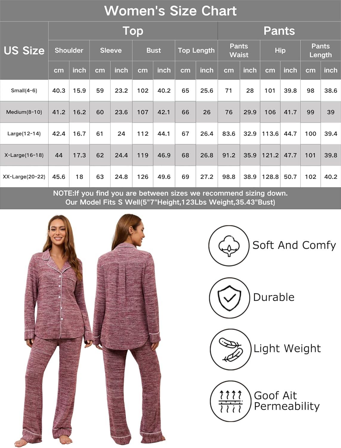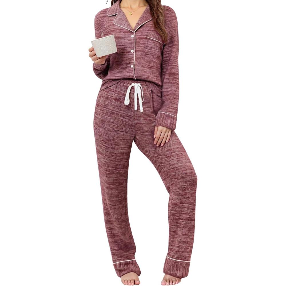 Leikar Button Up Pajama Set For Women Long Sleeve Shirt And Pajama Pants Soft Pjs Lounge Sets(Thickened Red)