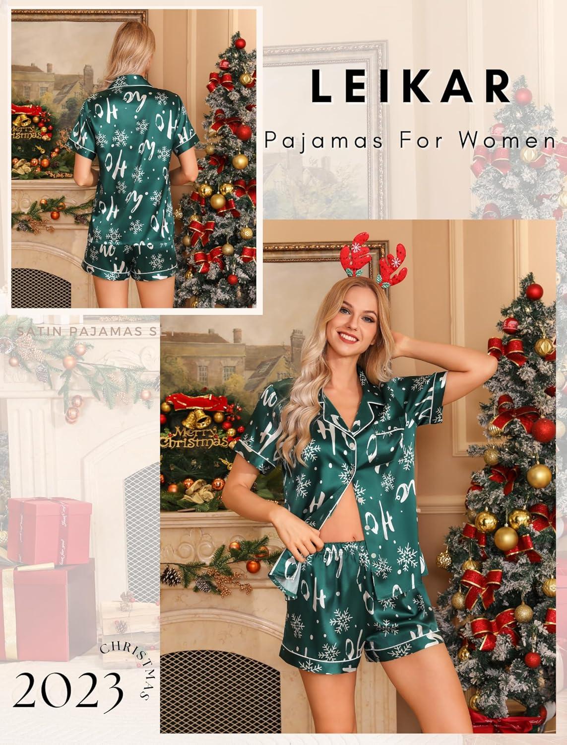 Be the first to review “Leikar Silk Pajamas For Women Button Down Pajamas Satin PJ Set Soft Sleepwear(Green Snow)”