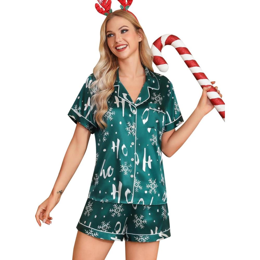 imageLeikar Silk Pajamas For Women Button Down Pajamas Satin PJ Set Soft SleepwearGreen Snow