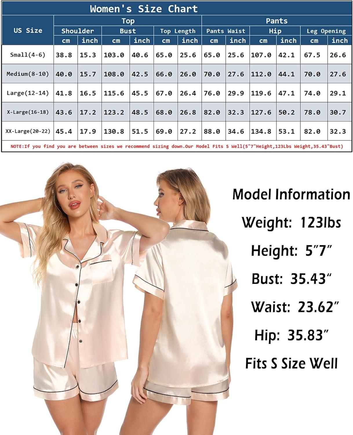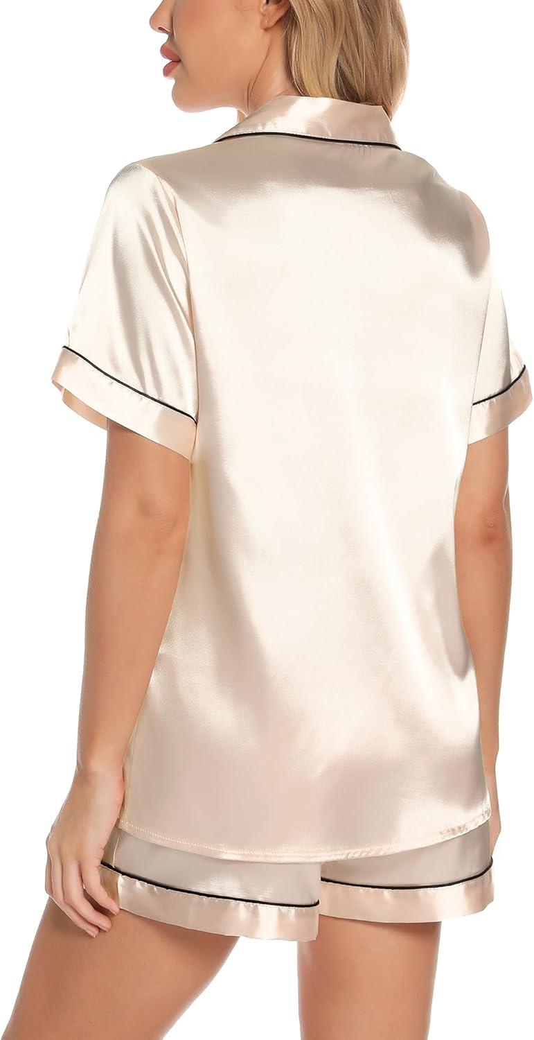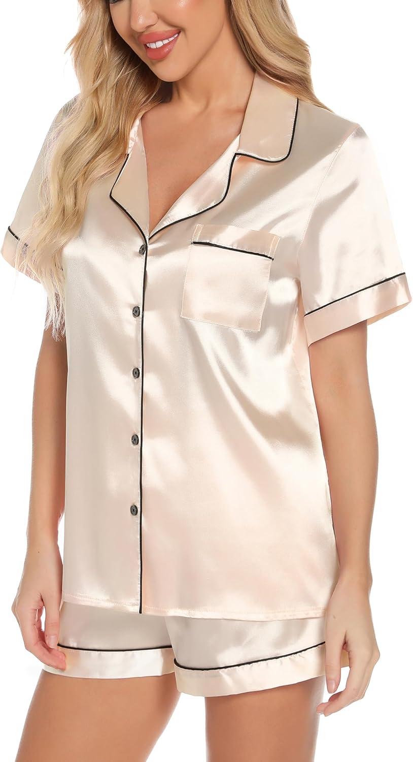 Leikar Silk Pajamas For Women Button Down Pajamas Satin PJ Set Soft Sleepwear(Light Apricot)