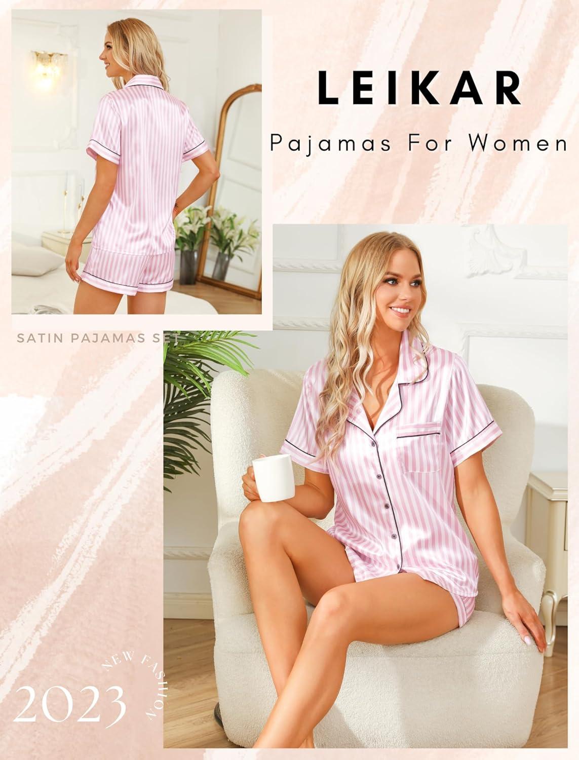 Be the first to review “Leikar Silk Pajamas For Women Button Down Pajamas Satin PJ Set Soft Sleepwear(Pink Stripe)”