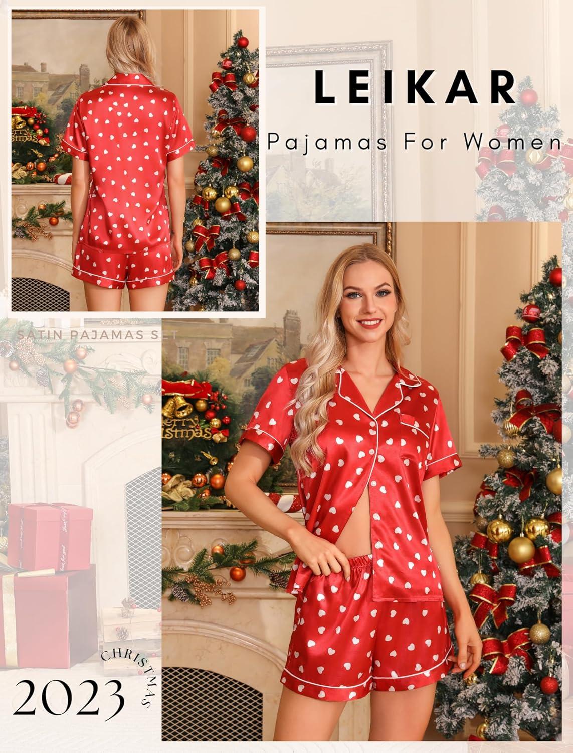 Be the first to review “Leikar Silk Pajamas For Women Button Down Pajamas Satin PJ Set Soft Sleepwear(Red Love)”