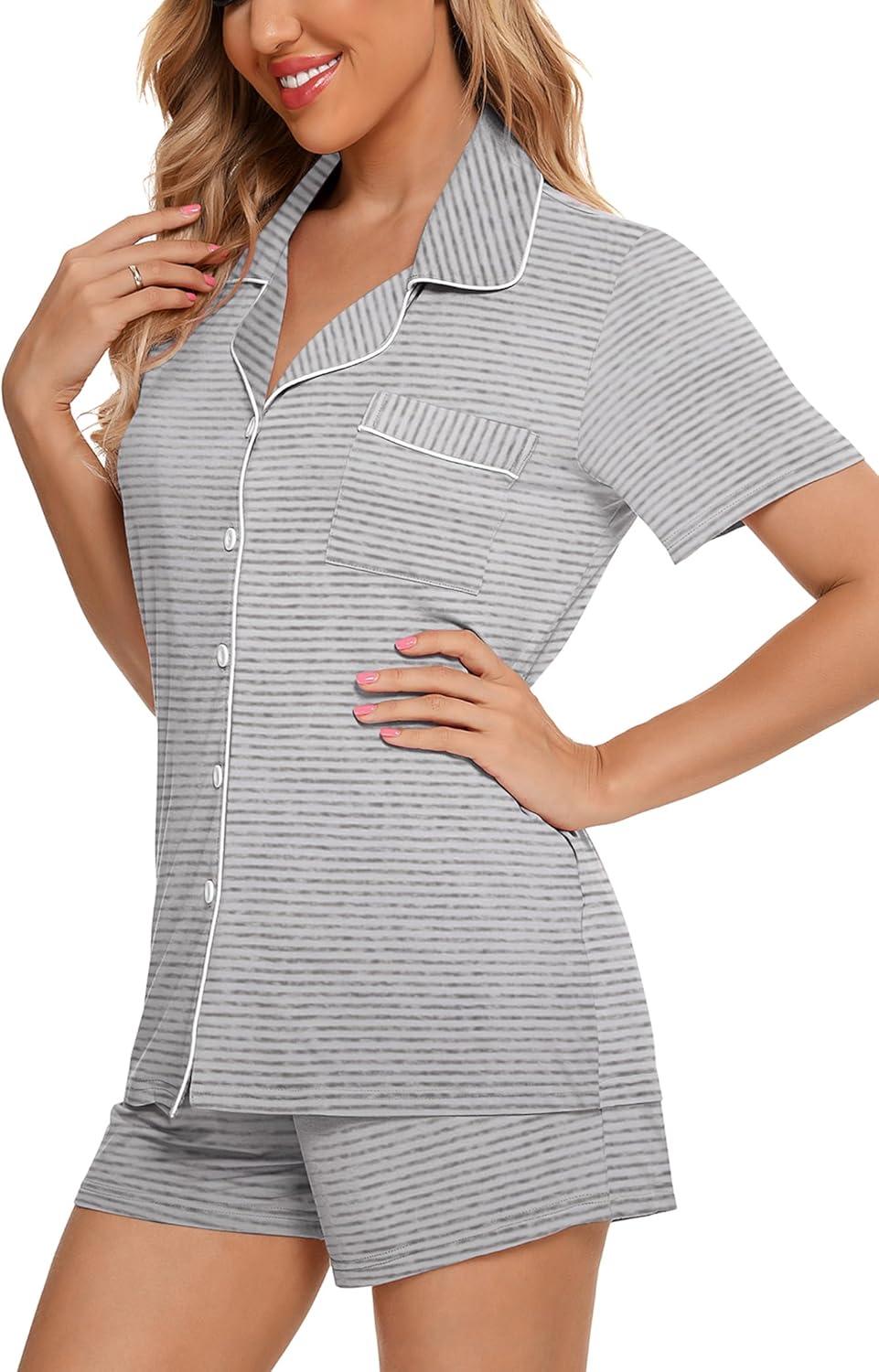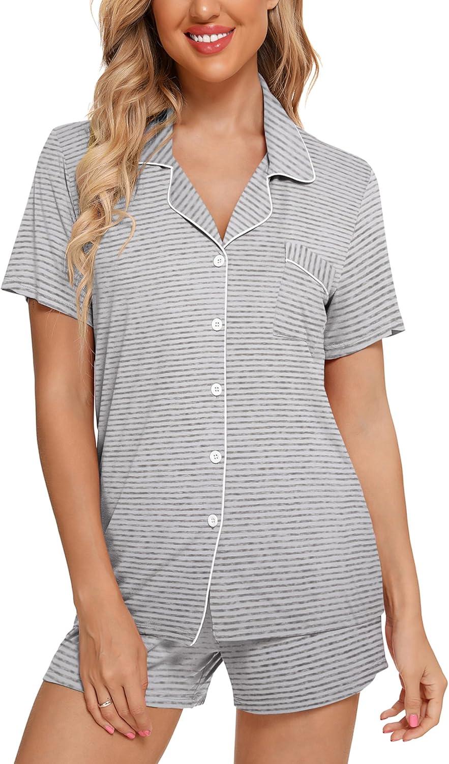 Save up to 40% on Leikar Womens Button Down Pajama Sets Bride Pajamas Sets Sleepwear Shorts Lounge Set(A-beige Stripe(with Shorts Pocket)) styles during our end-of-season sale.